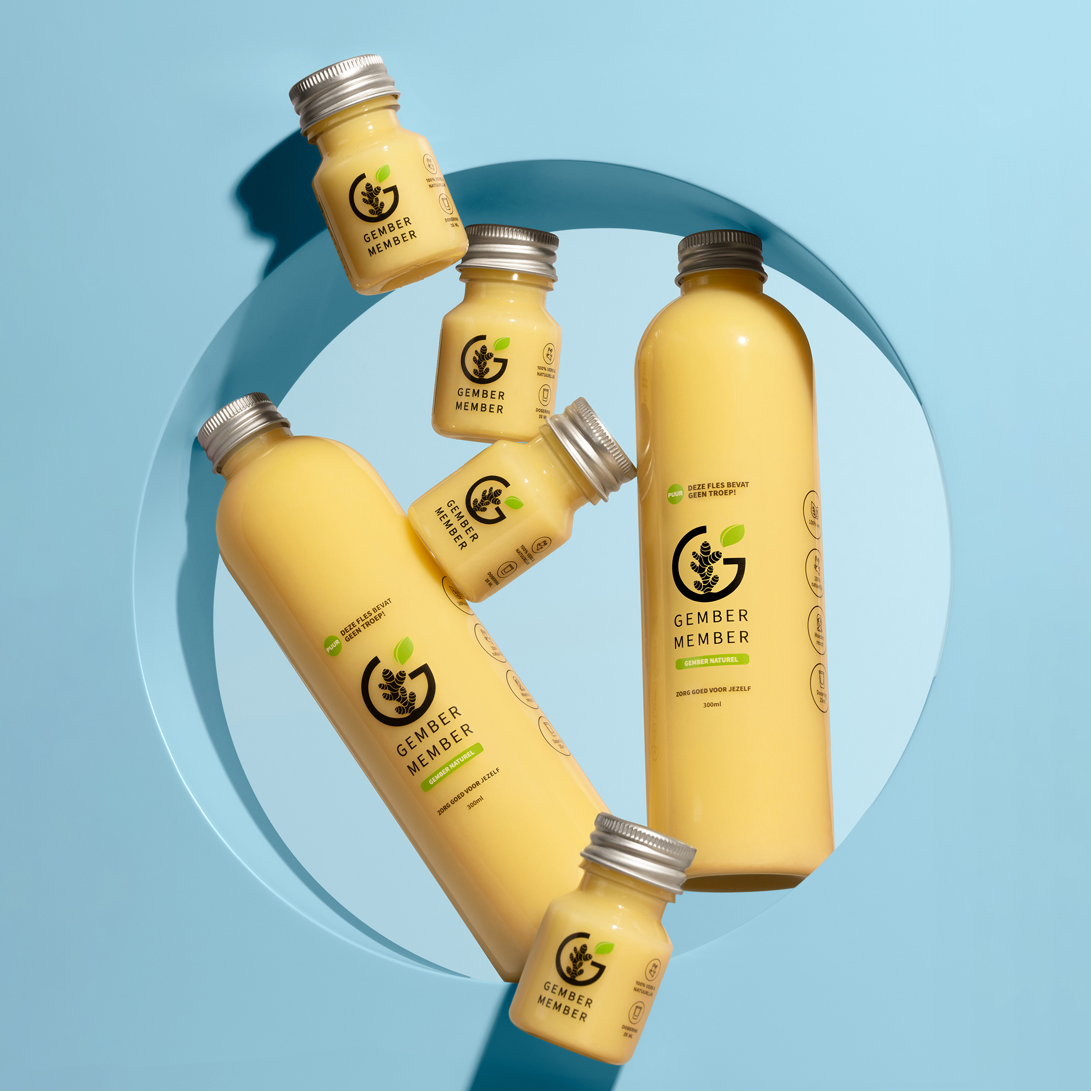 90% van de gembershots in de winkels of online zijn verhit en zitten vol met troep. Suikers, conserveringsmiddelen, smaakstoffen – alles wat de krachtige werking van gember vernietigt. Wij doen het anders. Wij pasteuriseren niet, omdat we geloven dat écht vers en écht puur het beste voor je is. Puur, vers en krachtig zoals je hem thuis zou maken!